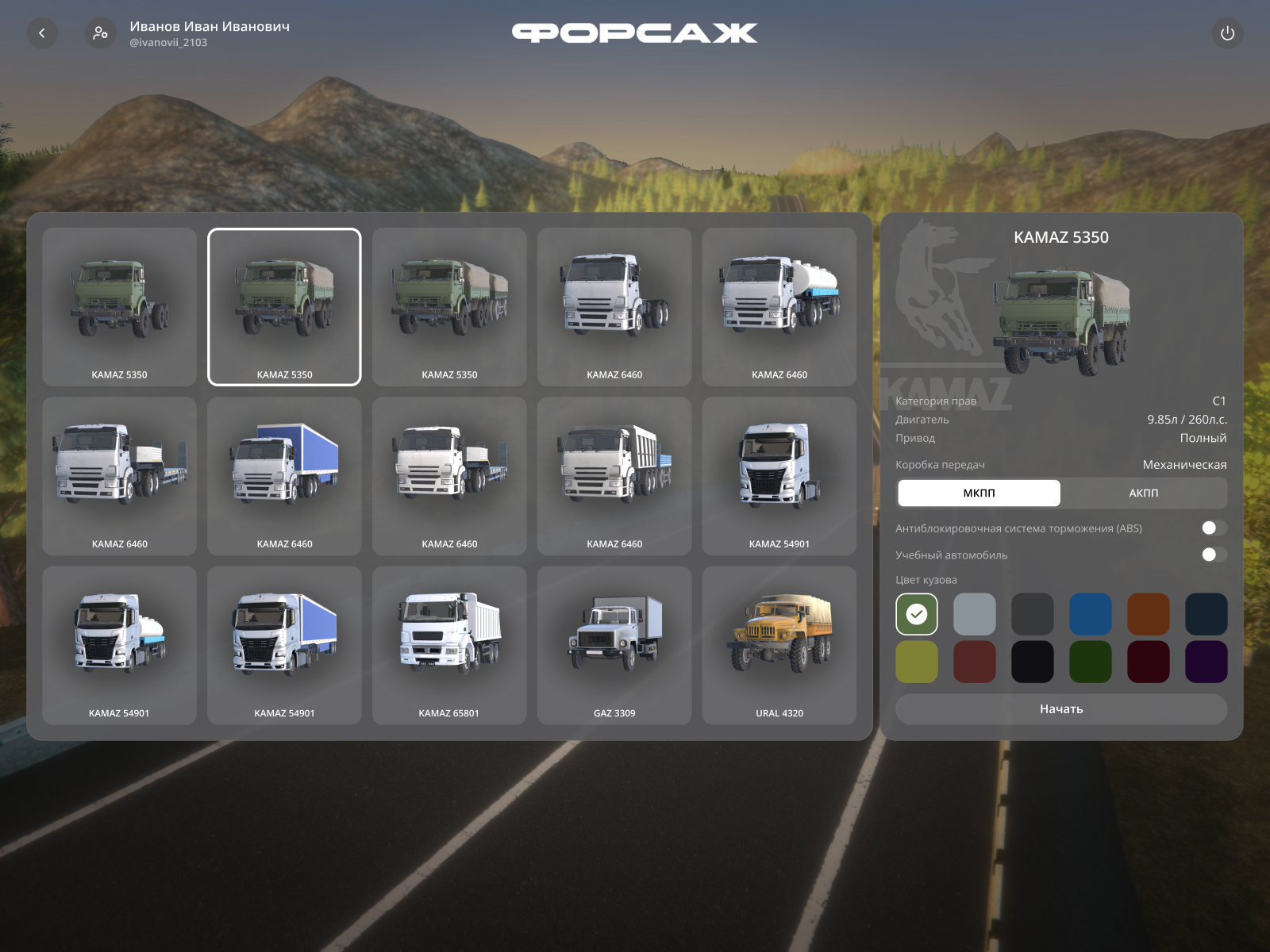 Кабина грузового автомобиля (на выбор):